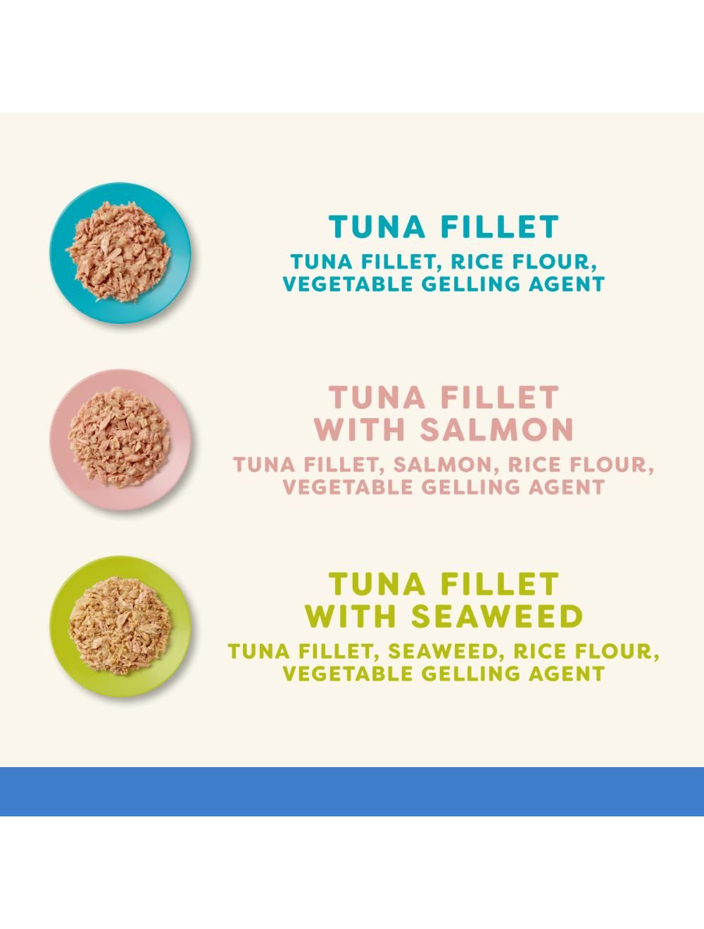 Tunfilet: Tunfilet* 46%, rismel*, vegetabilsk geleringsmiddel.