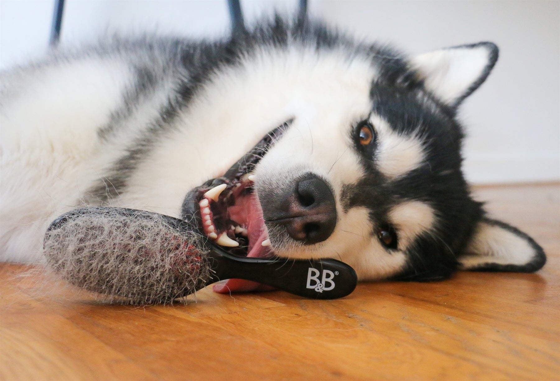 Børsten kombinerer svinehår og nylonhår, som skånsomt arbejder i dybden uden at skade hud eller pels. Samtidig hjælper den med at fordele de naturlige olier i pelsen, hvilket giver en sund og flot glans.