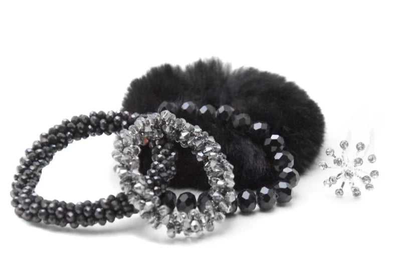 Bestseller-kittet i sort samler et udvalg af BelliNoxx’ mest populære håraccessories i sorte nuancer. Kittet giver dig mulighed for at skabe flere forskellige frisurer, så du nemt kan variere dit look fra stævne til stævne. Det indeholder tre krystalhårpynt, en faux fur ellastik og én krystalhårnål.