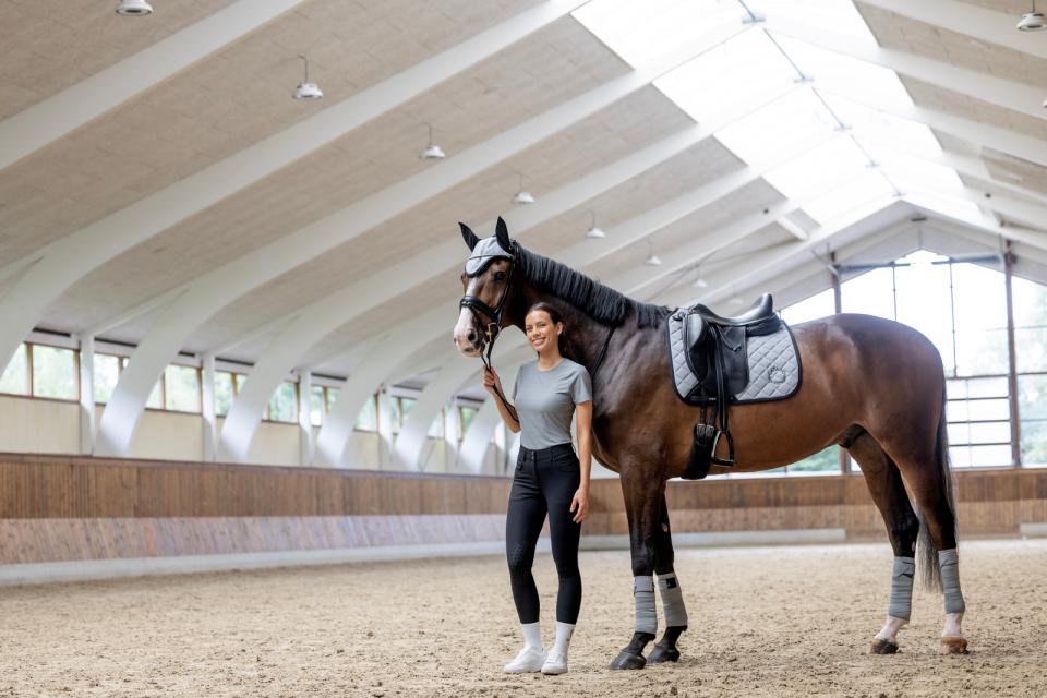 Underlaget har en ergonomisk pasform og er udstyret med 3D-mesh på ryggen, som sikrer god ventilation og komfort. Den innovative elastiske D-ring-rem gør sadlingen både nem og elegant, mens forstærkningen under gjordstropperne øger holdbarheden. Springmodellen er udstyret med en 1-rums gjordstrop med velcro, mens dressurmodellen har en 3-rums gjordstrop for optimal placering.