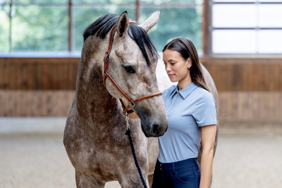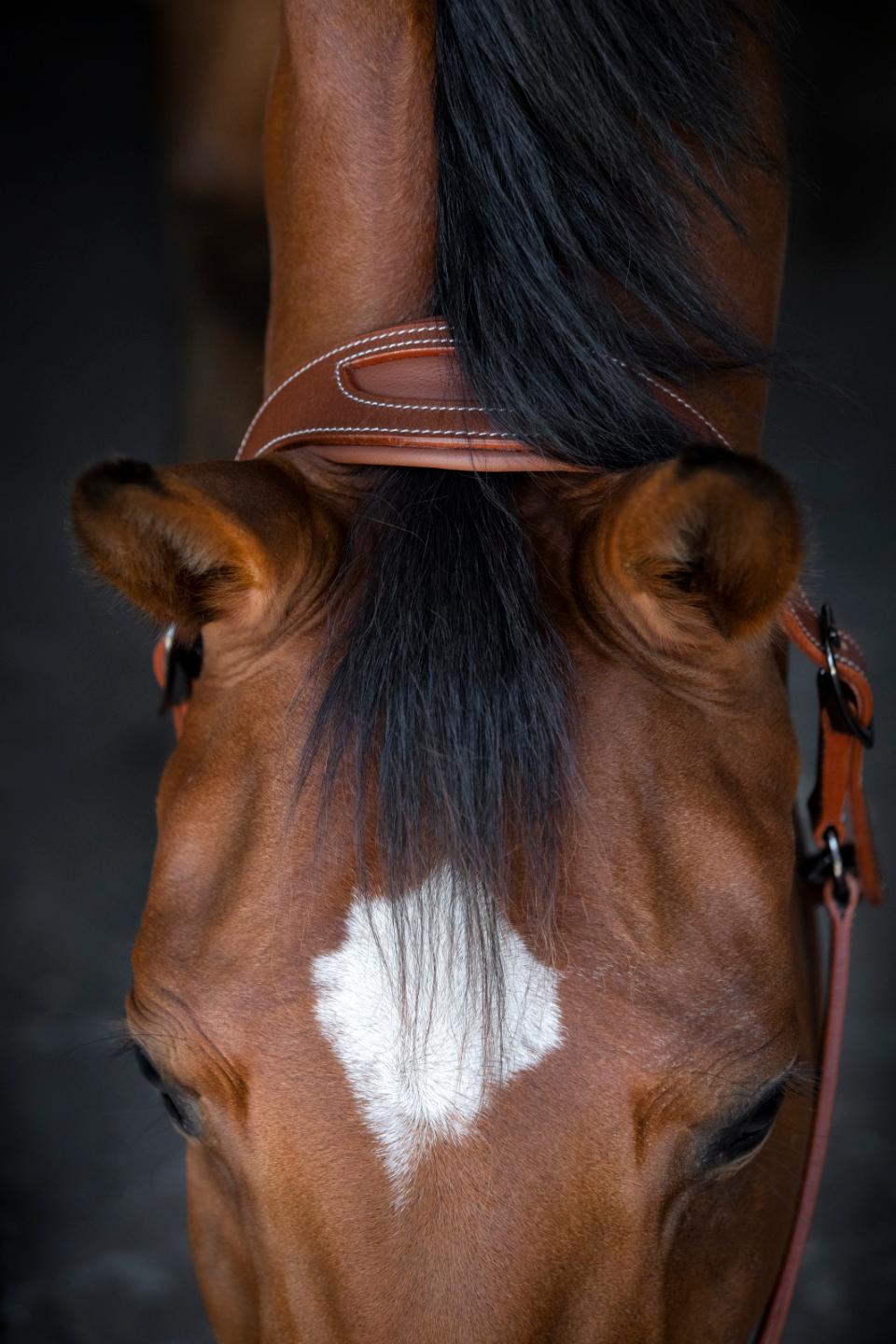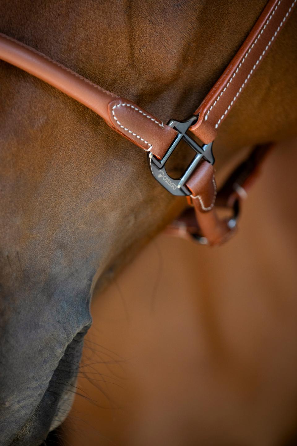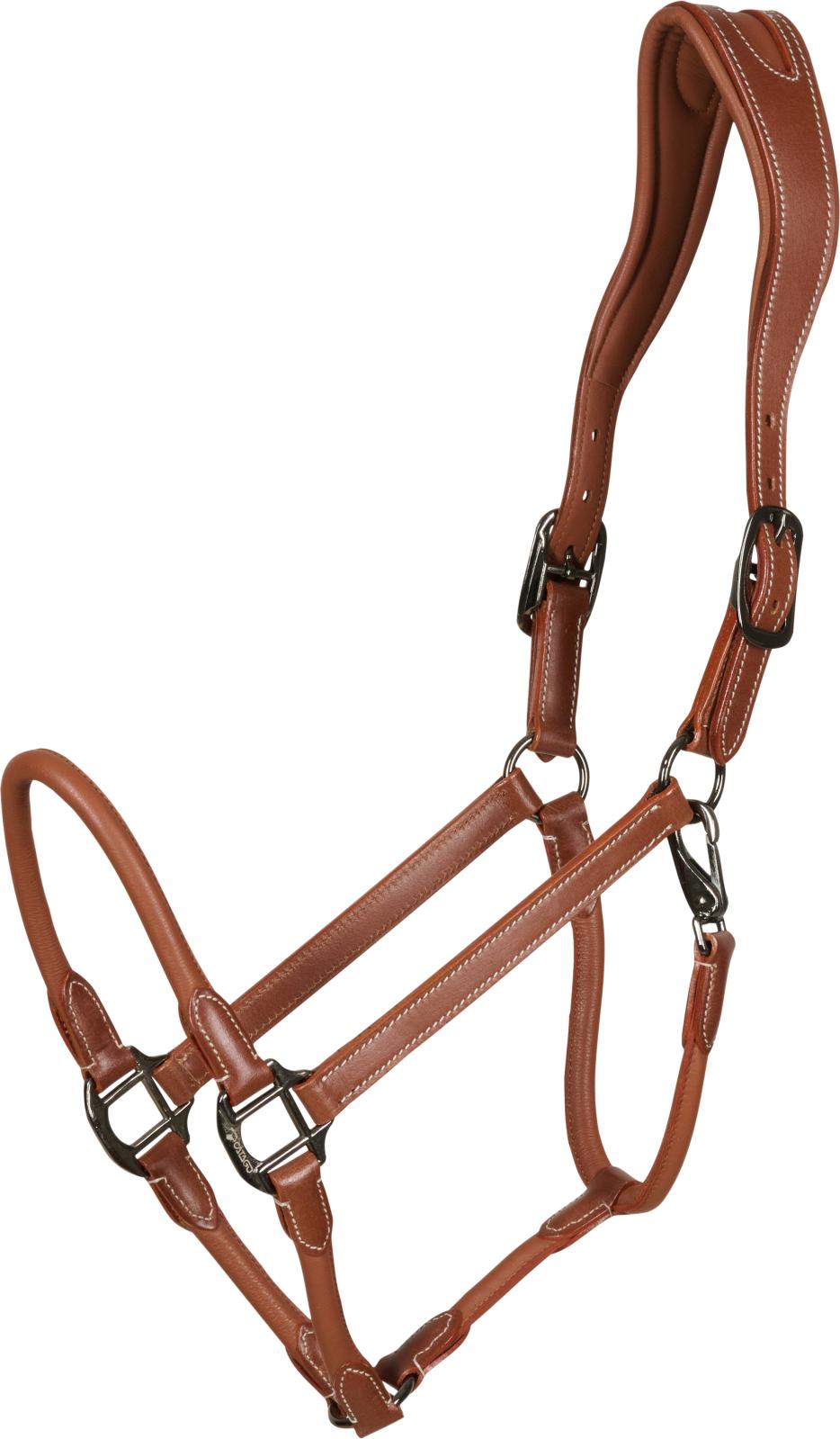 Grimen er rundsyet henover næseryggen og under hagen. Nakkestykket er anatomisk og trykaflastende som fordeler trykket henover hestens nakke.