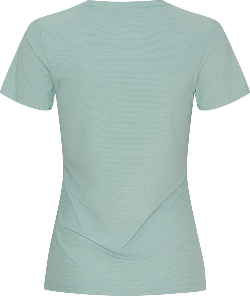 Denne bluse er et oplagt valg til både hverdagsbrug og aktive dage. Den har en klassisk rund hals og er fremstillet i et strækbart materiale, som giver høj komfort og god bevægelsesfrihed hele dagen.