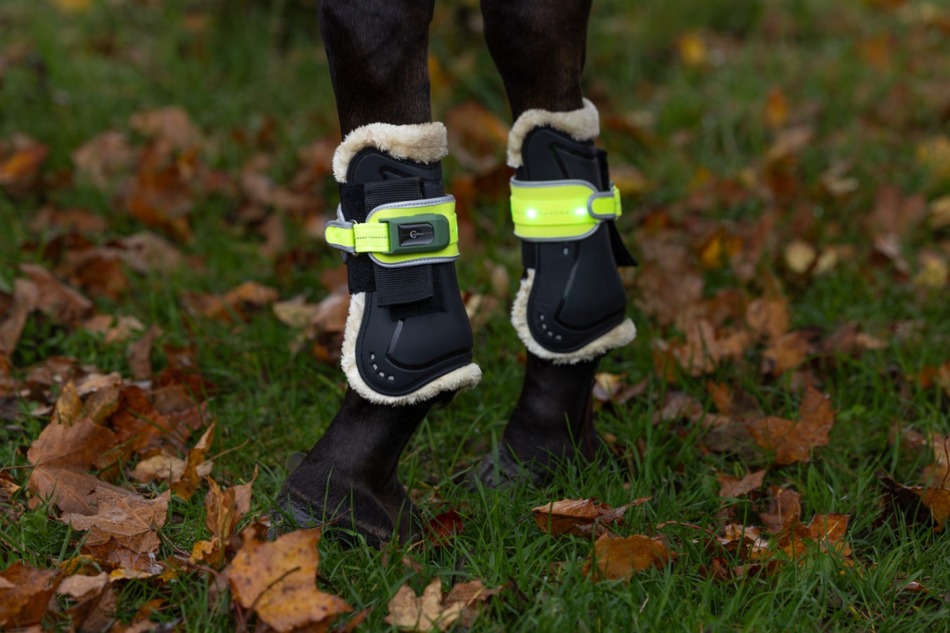 Med disse smarte LED-bånd til gamacherne bliver du og din hest synlige – også i mørket. Det justerbare LED-bånd kan ses på op til 300 meters afstand og giver ekstra sikkerhed under ridning i skumring eller på mørke dage.