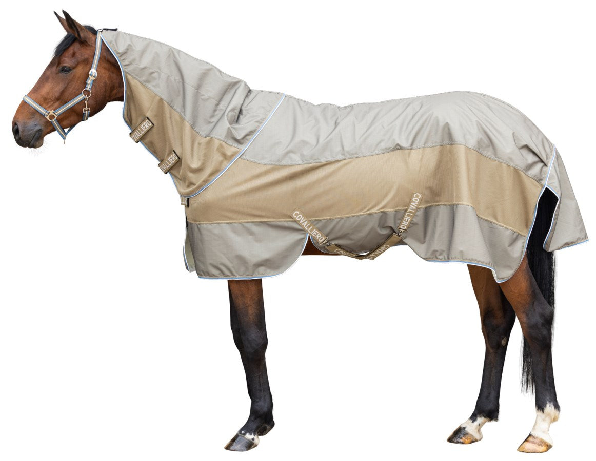 Dette smarte kombidækken fra Covalliero giver din hest optimal beskyttelse i skiftende vejr. Det fungerer både som regndækken og fluedækken, hvor det tætte mesh holder insekter væk, mens det vandafvisende ydermateriale beskytter mod regn.