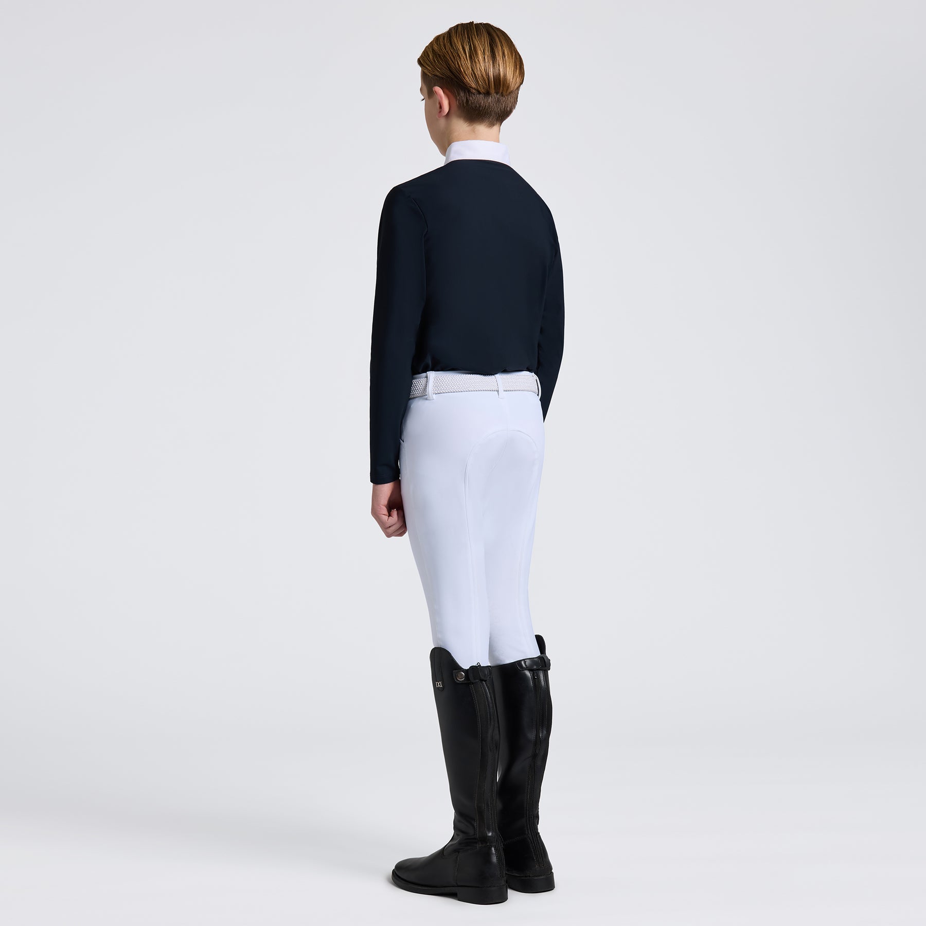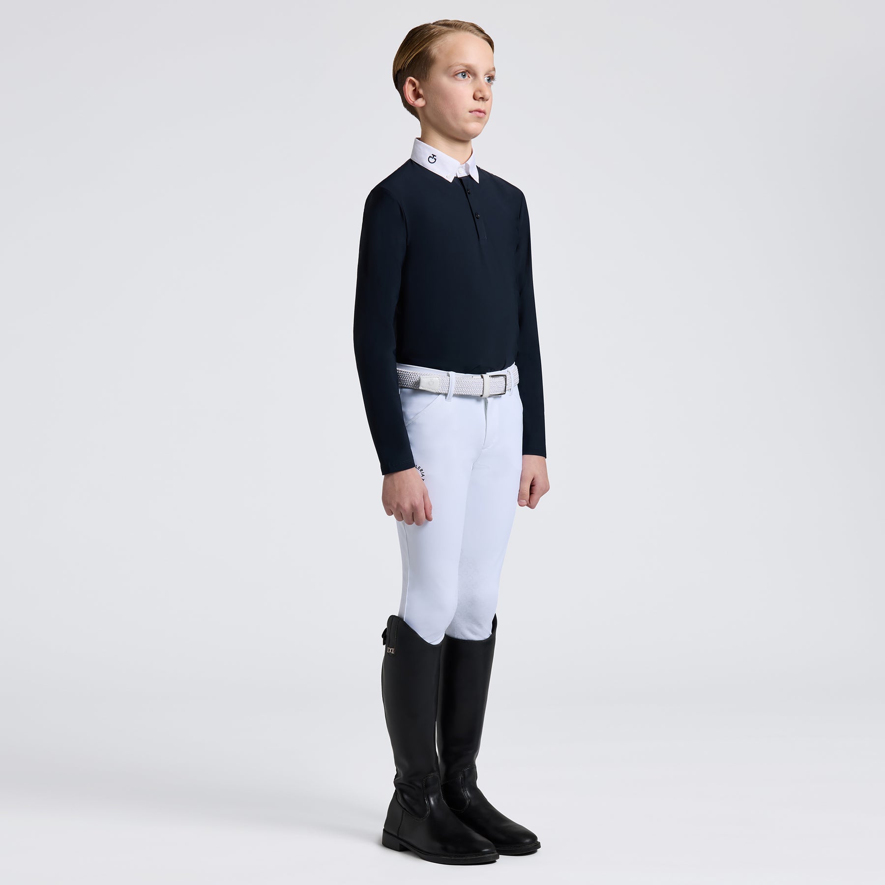Denne stævneskjorte til drenge fra Cavalleria Toscana kombinerer klassisk stil med moderne funktionalitet – perfekt til unge ryttere, der vil ride med både komfort og elegance.