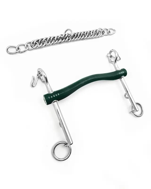 Andrea-biddet fås i to hårdhedsgrader: den lysegrønne, som er blød og ideel til unge eller meget sensitive heste, og denne mørkegrønne, som giver en anelse mere struktur og klarere signaler til heste, der har brug for lidt mere støtte.