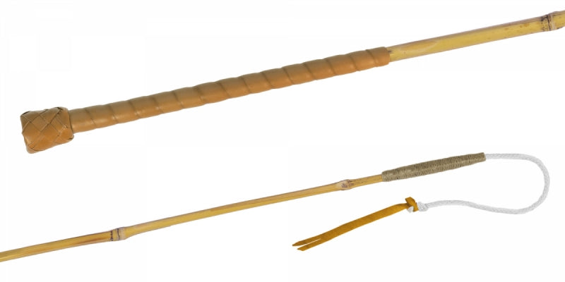Håndtaget er snoet med blødt læder som giver et godt greb. Resten af pisken er lavet i et miljøvenligt bambus.
