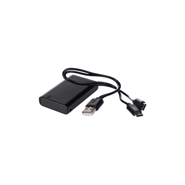 I toppen har strømperne en lille lomme til den medfølgende powerbank, som kan opvarme dine fødder nedefra. Ved et simpelt tryk varmer strømperne nemlig i sålen. Powerbanken har strøm til 4 timers varme.