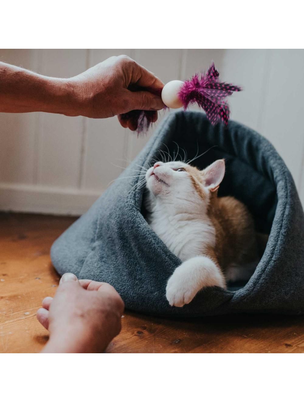 Hulelignende kæledyrsseng med en innovativ form, som er særlig egnet til katte og små hunde. Den afrundede form og det lækre materiale indbyder til rigtig at putte sig og lægge sig godt til rette.