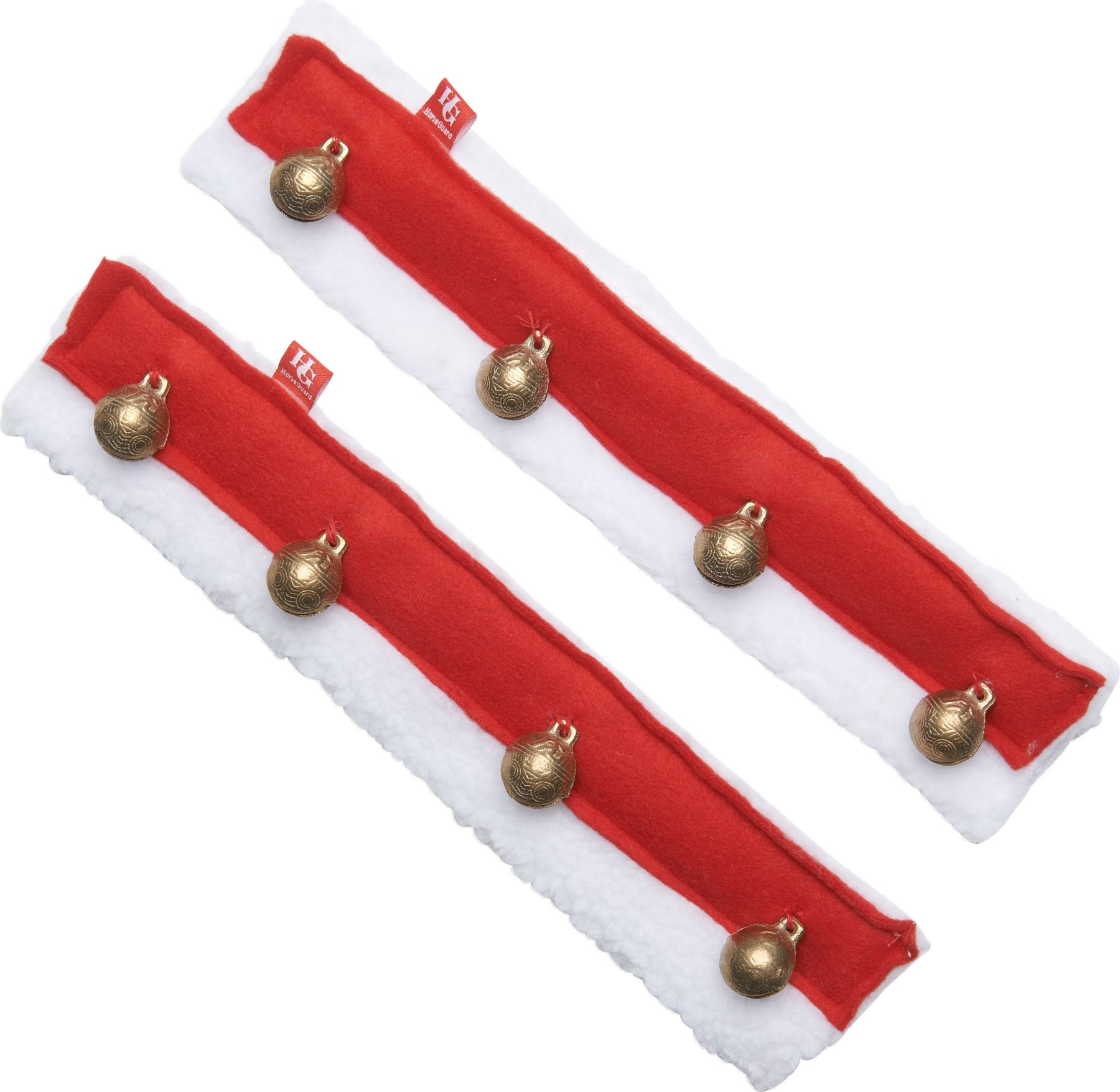 Med velcro. Sættes nemt på tøjlerne og lyden fra bjælderne giver en rigtig hyggelig julestemning.