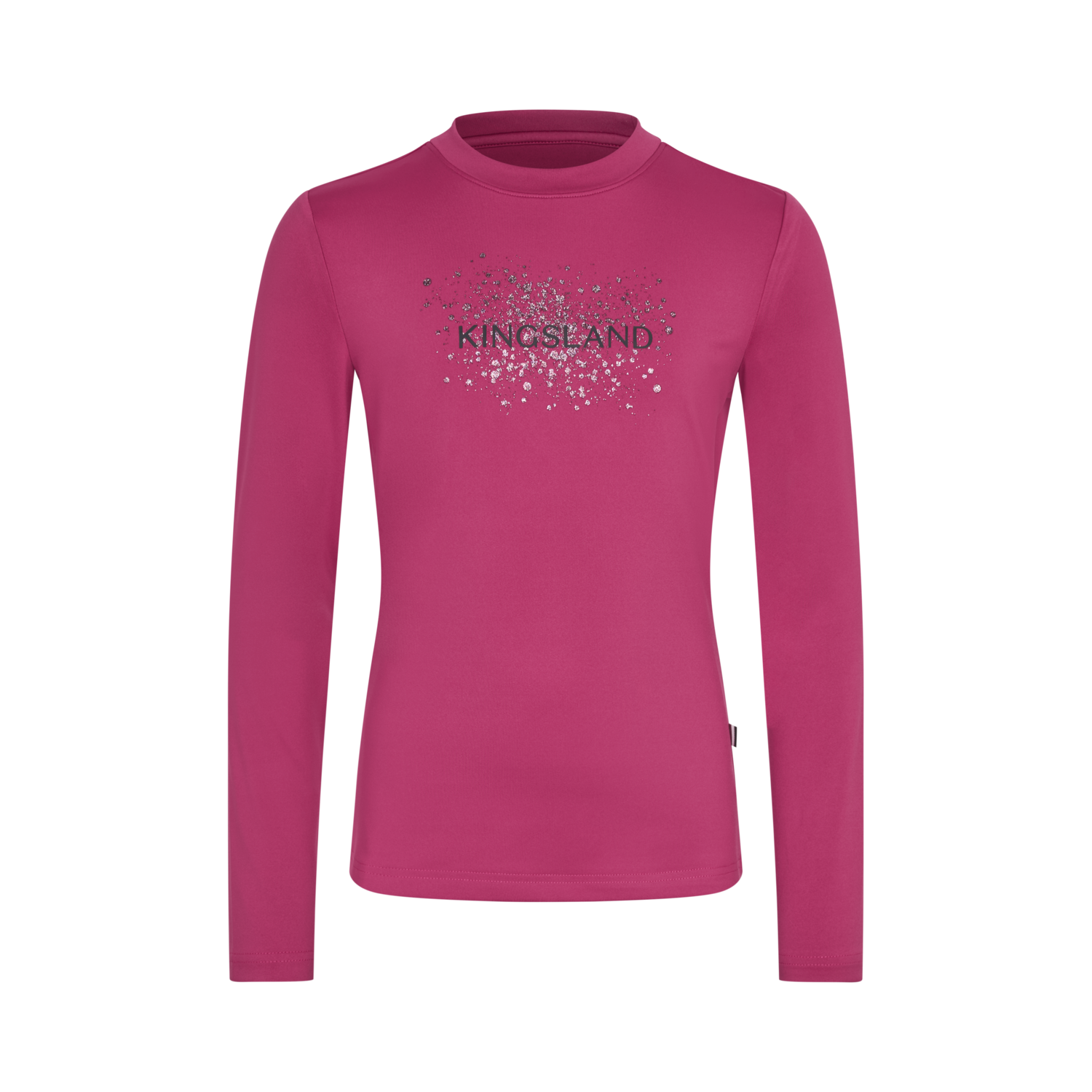 Designet er lige så gennemtænkt som funktionaliteten. Den smukke pink farve giver et feminint og energisk udtryk, mens Kingsland-logoet på brystet, omkranset af glitrende detaljer, tilfører en elegant og moderne finish. Resultatet er en træningstrøje, der ikke kun yder sit bedste under aktivitet, men også ser fantastisk ud – perfekt til både hverdagsbrug, træning og stævner.
