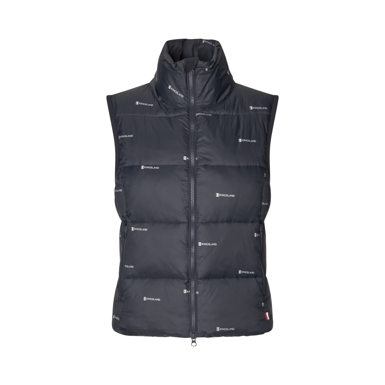 Med sin feminine pasform, bløde polstring og praktiske tovejs-lynlås er den både alsidig og funktionel – ideel til både ridning og hverdagsbrug. Det elegante all-over Kingsland-logo fuldender looket og giver et sporty, eksklusivt præg.