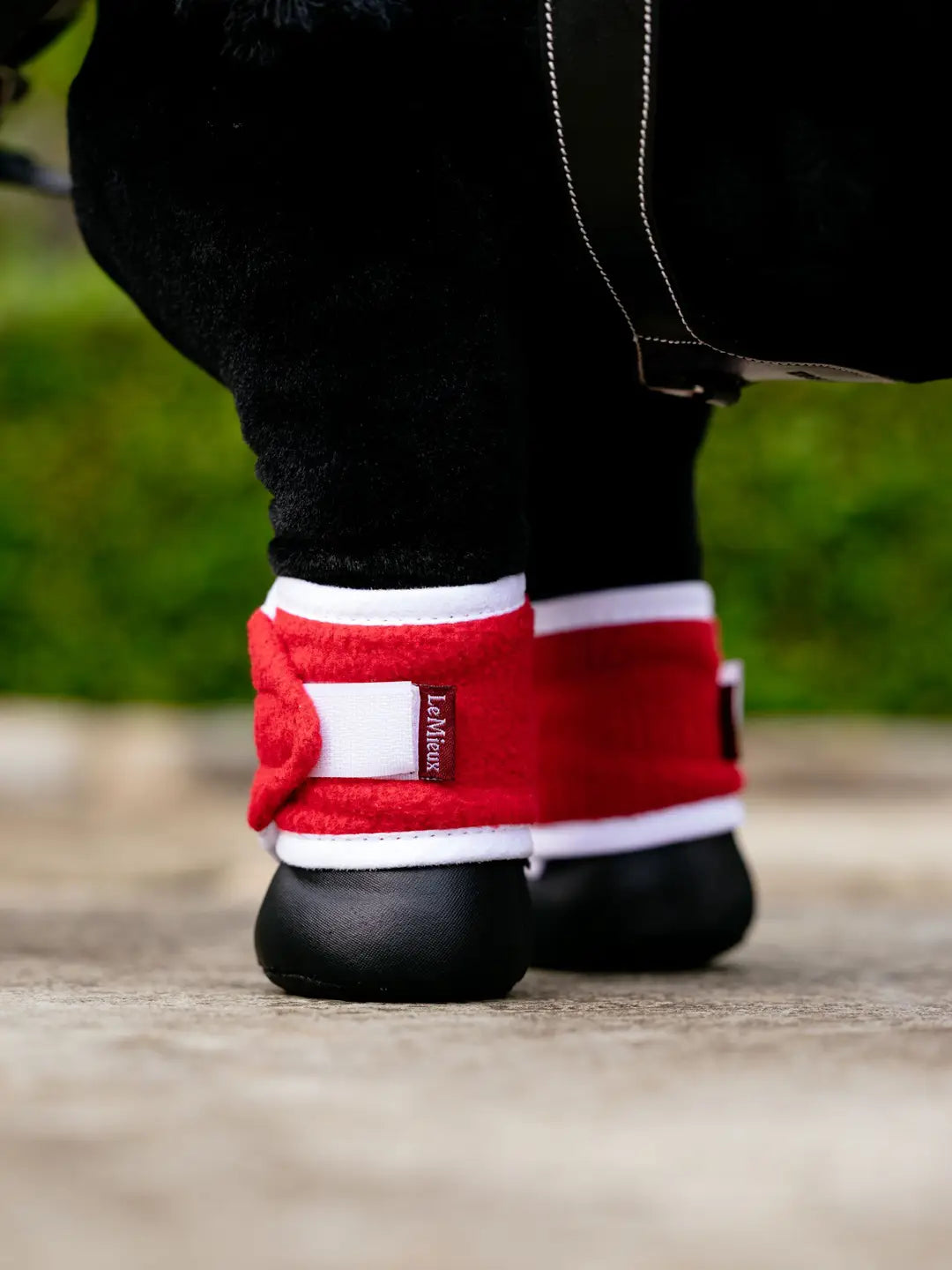 Skal din LeMieux minipony være klar til julestævne, eller skal den blot julepyntes, så kan du nu style den med dette søde julesæt fra LeMieux bestående af hut, bandager og underlag.