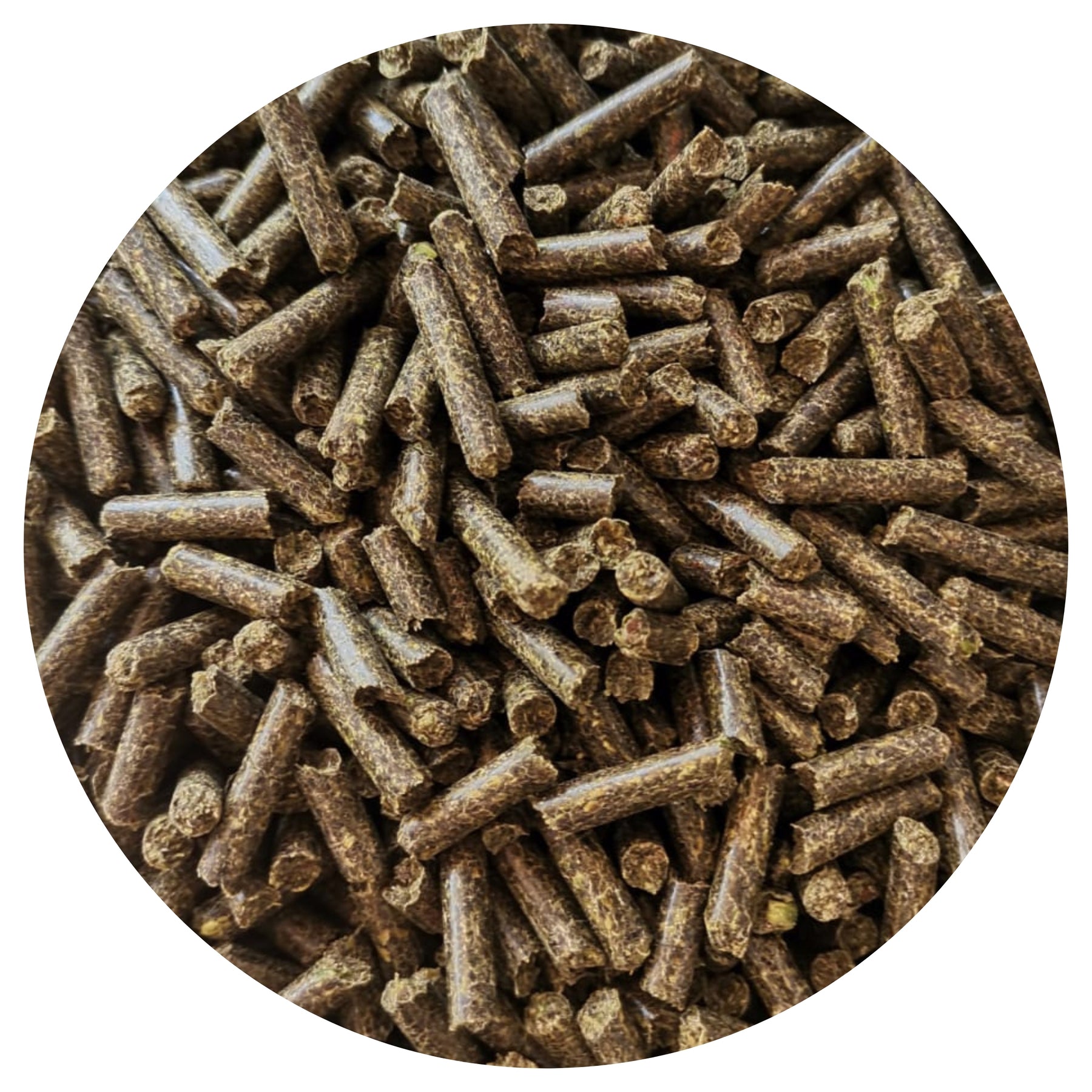 Roefibre, Esparsette, Hvedeklid, Hørfrøkage, Æblefibre, Ekstruderet rapsskrå, Natriumklorid, Calciumcarbonat, Hyben, Rapsolie, Monocalciumfosfat, Magnesiumoxid, Tangmel, MSM methylsulfonylmethan, Brændenælde, Mælkebøtterod, Marietidsel, Havtorne blade med blomster, Rosmarin blade