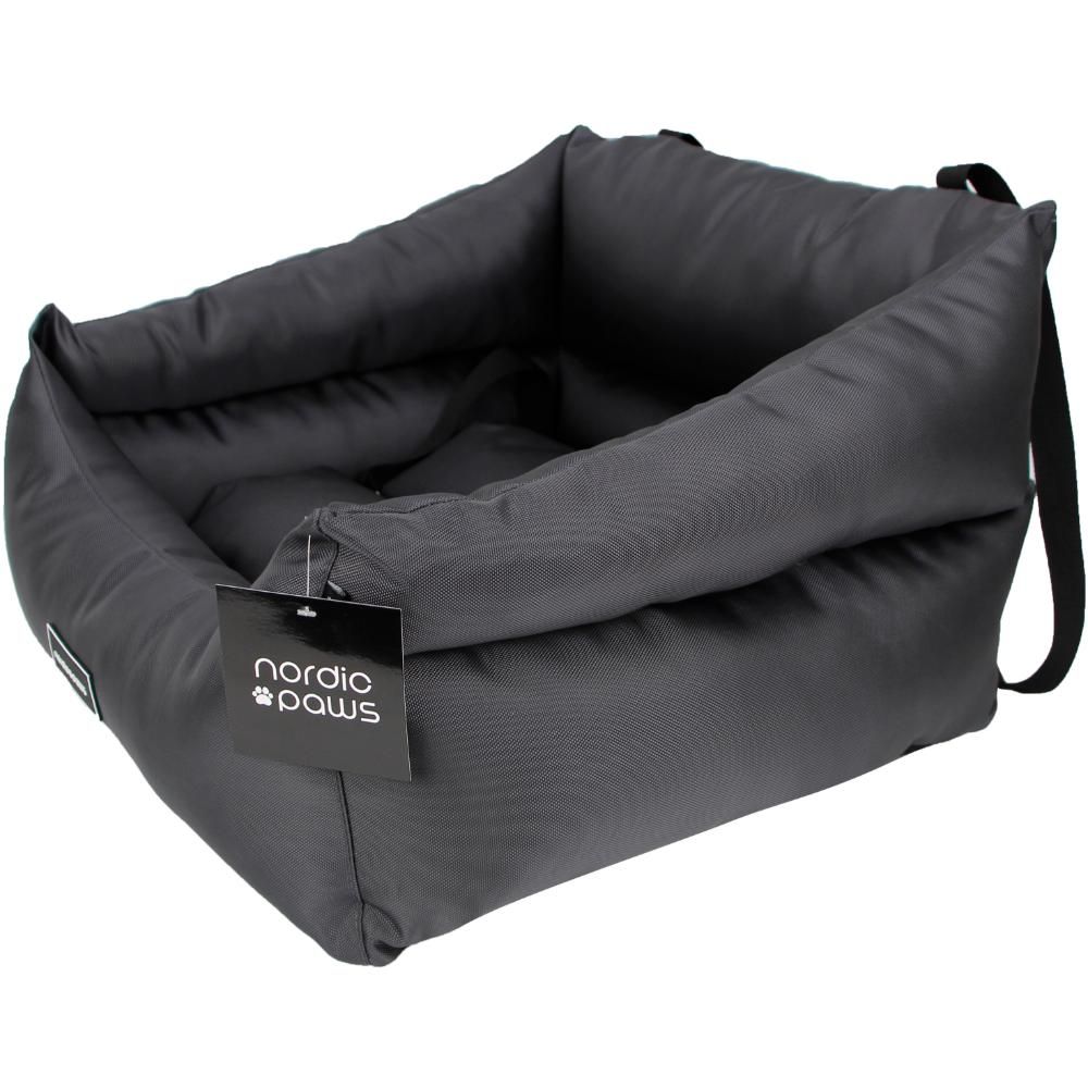 Berta bilsæde til hund fra Nordic Paws er designet til at give din hund en sikker og komfortabel plads under køreturen. Bilsædet er udstyret med en blød, aftagelig inderpude med lynlås og en skridsikker bund, som sikrer, at sædet står stabilt på bilens sæde.