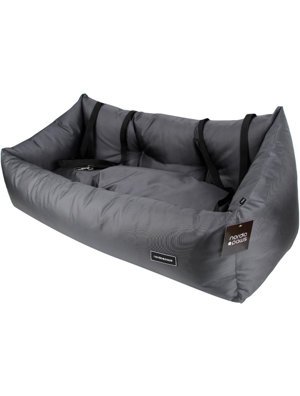 Ekstra stort bilsæde som er ideelt til bagsædet eller bagagerummet. Med aftagelig inderpude med lynlås og anti-slip bund. Justerbare stropper til fastgørelse på bilens sæde. 2 stropper fastsyet i sømmen indvendigt i bilsædet til fastgørelse i hundens sele*. Egnet til en større hund eller 2 mindre hunde.