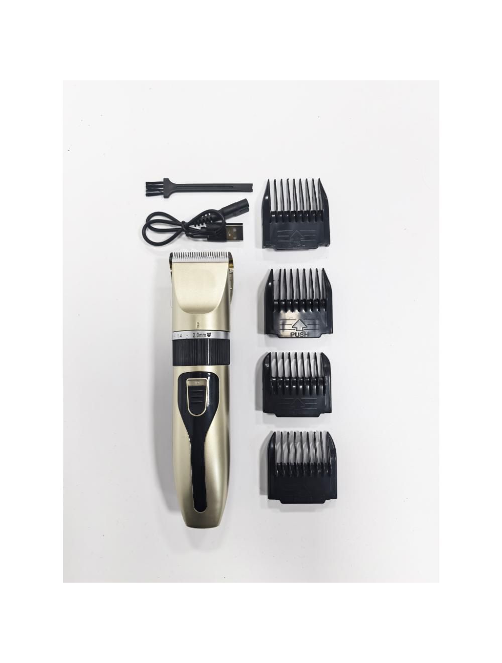 De 4 afstandskamme er i længderne 3, 6, 9 og 12 mm. Der medfølger olie til skærene, USB ladekabel og en lille børste til rengøring.