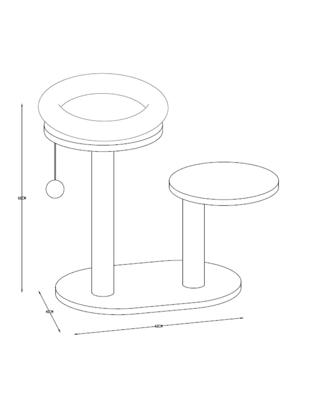 Platformene er beklædt med blødt plys, som gør dem perfekte til afslapning og lur, mens de naturlige træstolper er omviklet med slidstærkt sisalreb, der indbyder til klatring og krads.