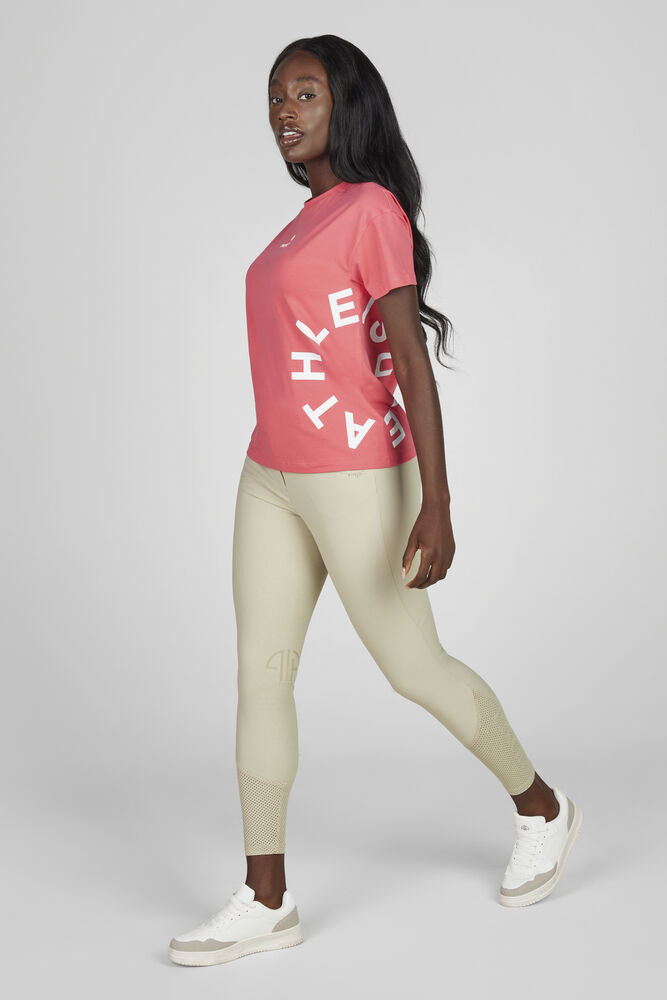 Pikeur Athleisure oversized t-shirten har en løs pasform som giver et moderne look, mens det bløde bomuldsstof med stretch gør den super behagelig at have på – både i stalden og til hverdagsbrug. Stort flot print i siden og en flot og frisk farve som virkelig tiltrækker opmærksomhed i stalden.