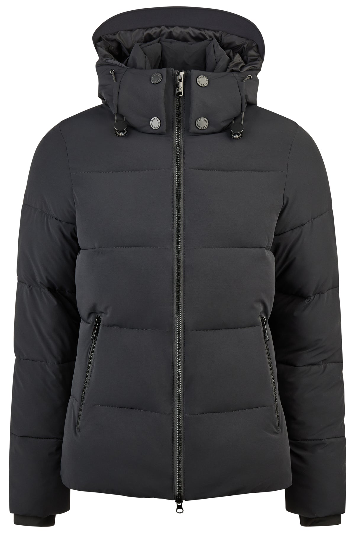 Denne quiltede jakke med aftagelig hætte kombinerer sporty funktionalitet med et elegant udtryk. Den er fremstillet i bi-elastisk materiale med mat look og subtil ripstop-struktur, som giver maksimal bevægelsesfrihed og holdbarhed.