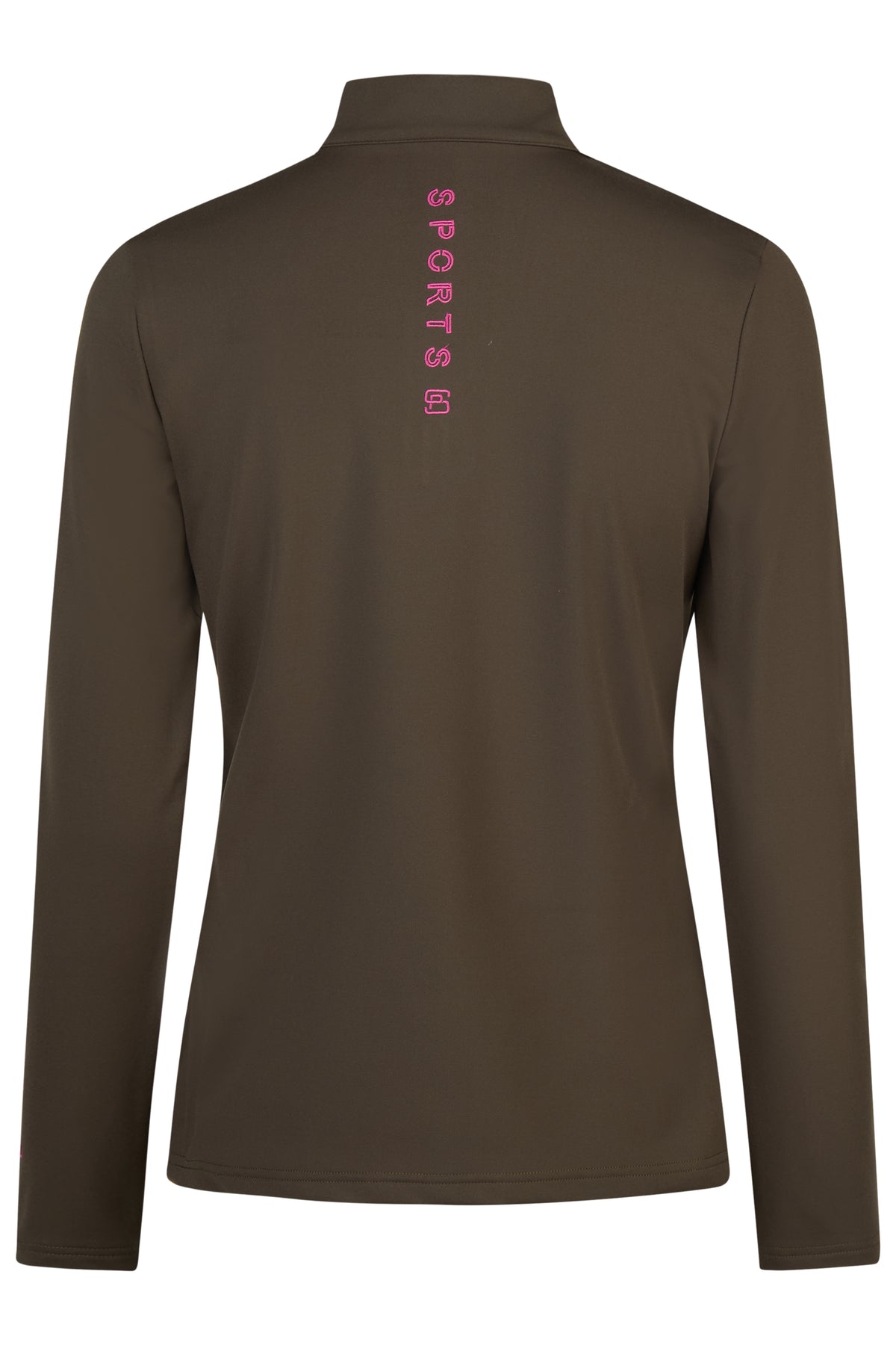 Denne sporty funktionsshirt med 1/4 lynlås kombinerer et stilrent design med høj komfort. Den er fremstillet i et funktionelt materiale, der føles let og åndbart – perfekt til både ridning og aktiv fritid.