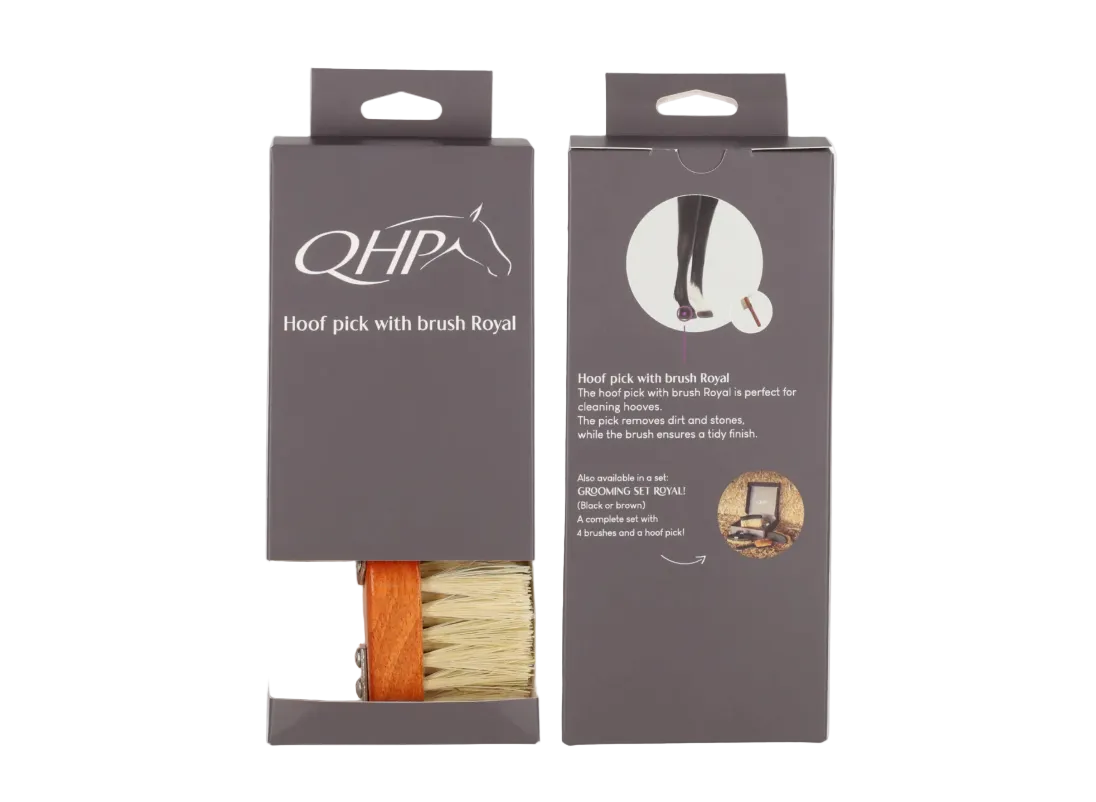 Hovrenseren er perfekt til den daglige hovpleje. Den solide hovrenser fjerner nemt møg, snavs, småsten og sand, så hoven holdes ren og sund. Den integrerede børste gør det let at give hoven en grundig afsluttende rengøring, så intet overses. Fremstillet i naturlige materialer som træ, Tampico-fibre og jern, kombinerer Hoof Pick Royal funktionalitet med et klassisk og tidløst udtryk.