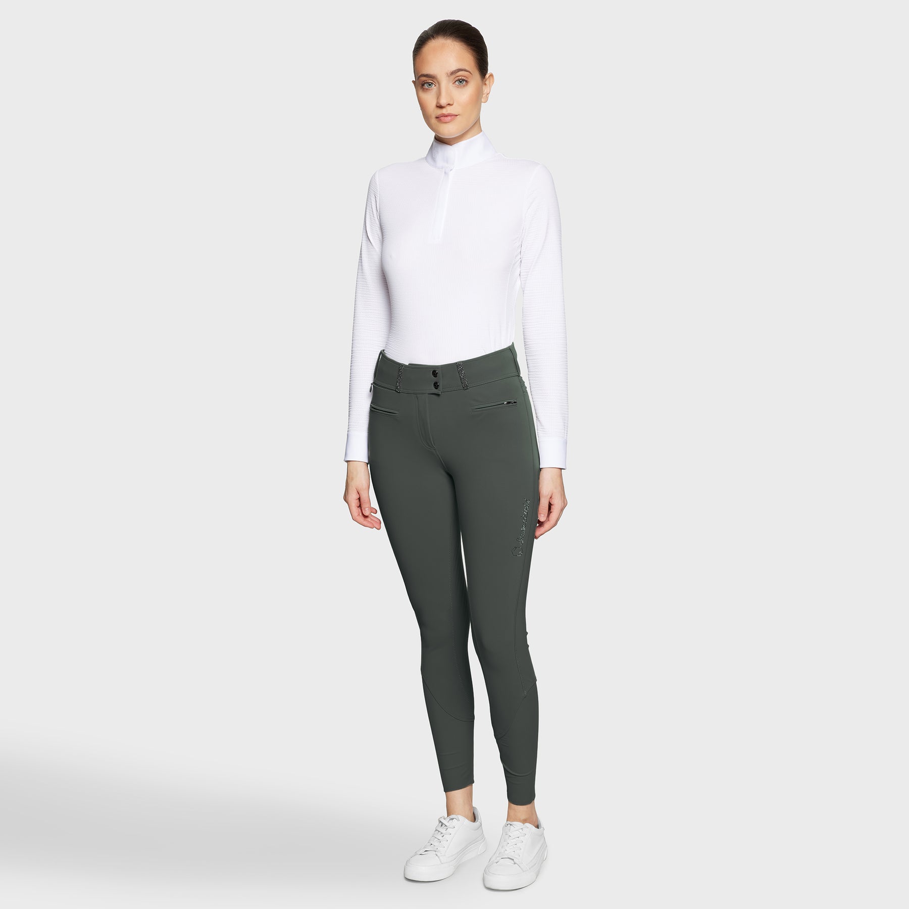 Et par teknisk avancerede ridebukser, der forener ynde, komfort og ydeevne – designet til at holde og præstere, sæson efter sæson.