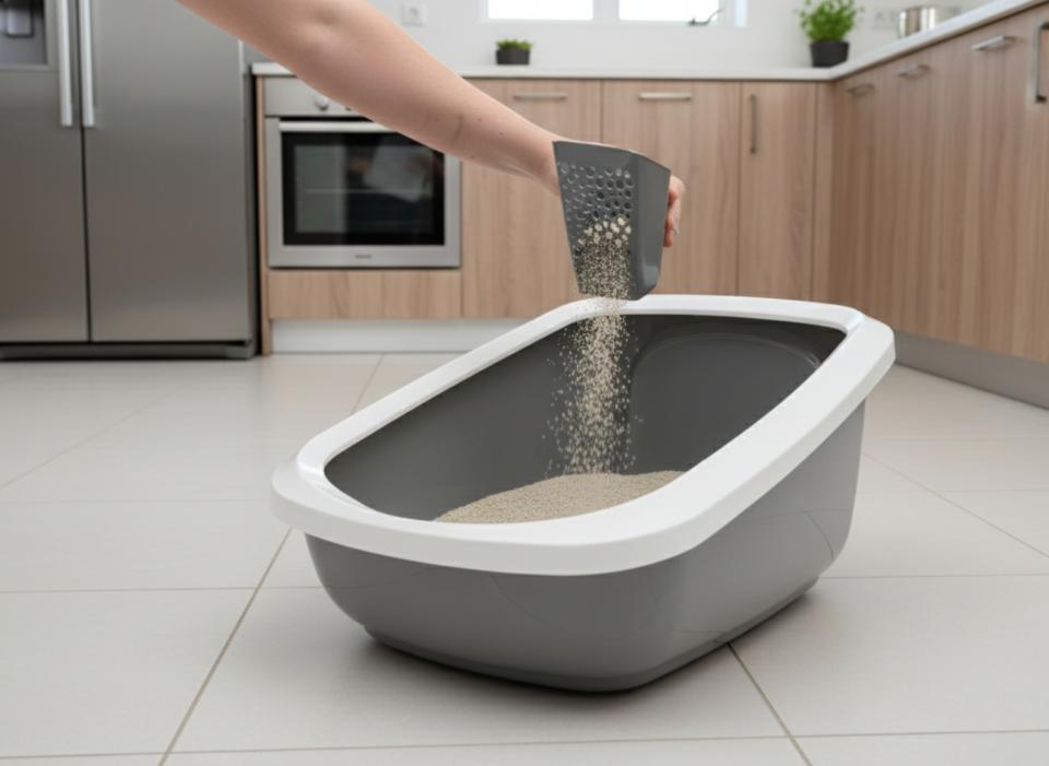 Det ergonomiske håndtag sikrer et behageligt greb. Det holdbare plastdesign giver lang levetid og nem vedligeholdelse, mens den store kapacitet hjælper dig med at rengøre store kattebakker effektivt.