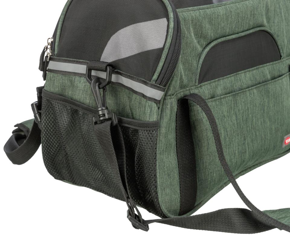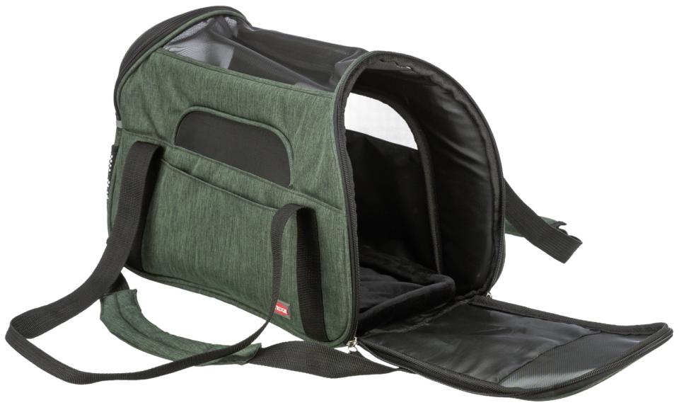 Tasken er super god, når du skal have hunden med på farten. Den er endda lavet således, at den kan fastgøres på en trolly. Tasken yder god komfort til din hund, da den har en blød polstret bundplade og super god ventilation gennem netstoffet, som yderligere er finmasket, for at holde insekter ude.