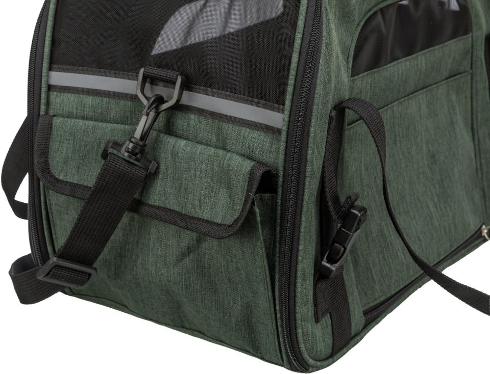 Den kan fastgøres på en trolley, hvilket gør den ideel til rejser. Smarte spænder forhindrer, at lynlåsene åbnes uønsket under transport. Tasken åbnes forfra, så det er nemt at få dit dyr ind og ud.