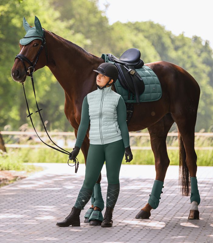 Det perforerede, åndbare materiale sikrer konstant luftcirkulation og hjælper med at regulere temperaturen, så benene holdes kølige. En anatomisk placeret udskæring foran giver fri bevægelighed i koden uden at gå på kompromis med beskyttelsen.