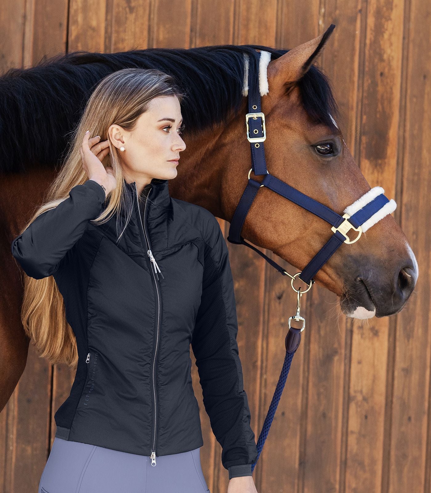 Designet fuldendes med elastiske kanter ved ærmer og bund samt ELT Equestrian Sports detaljer og logo, som giver et sporty og stilrent udtryk.